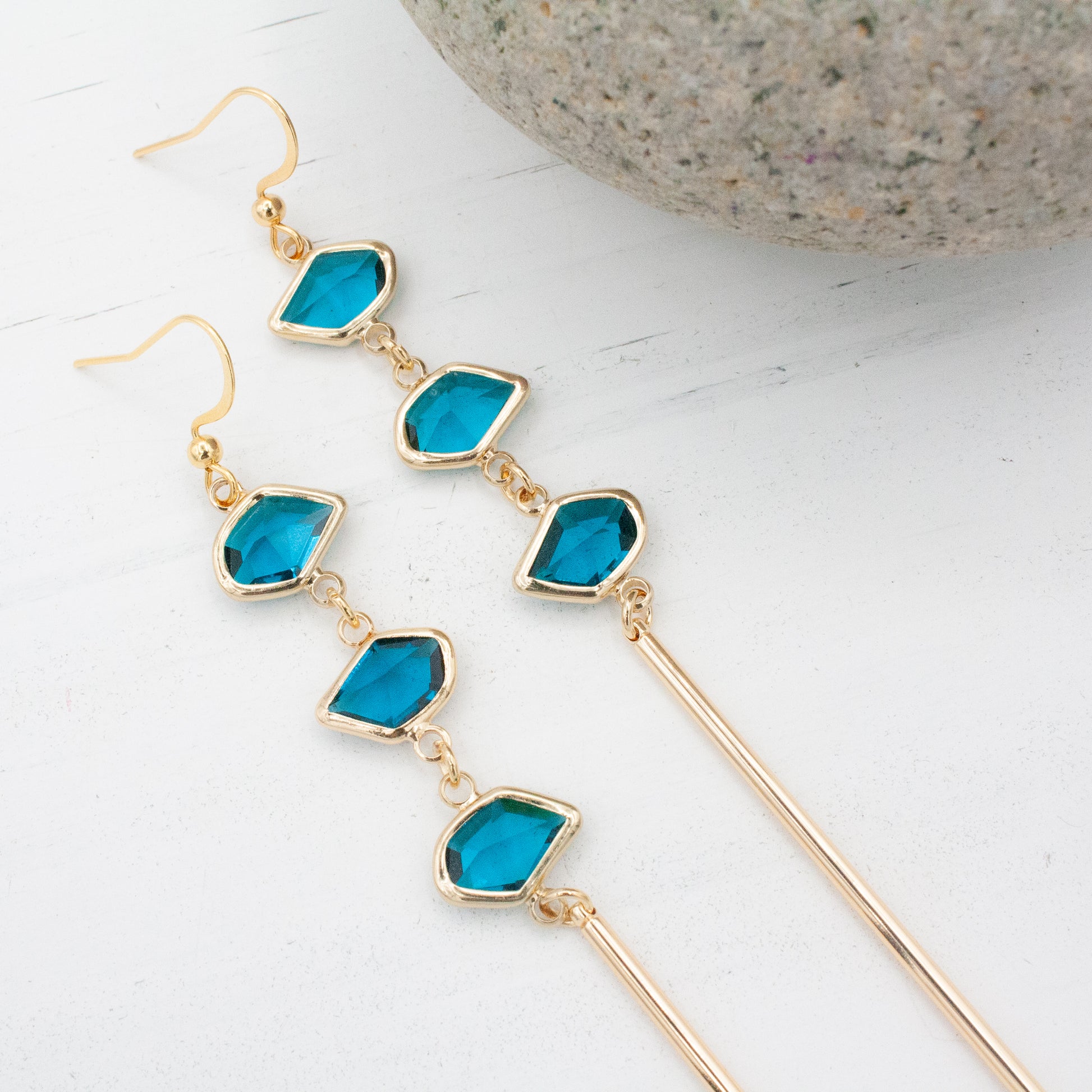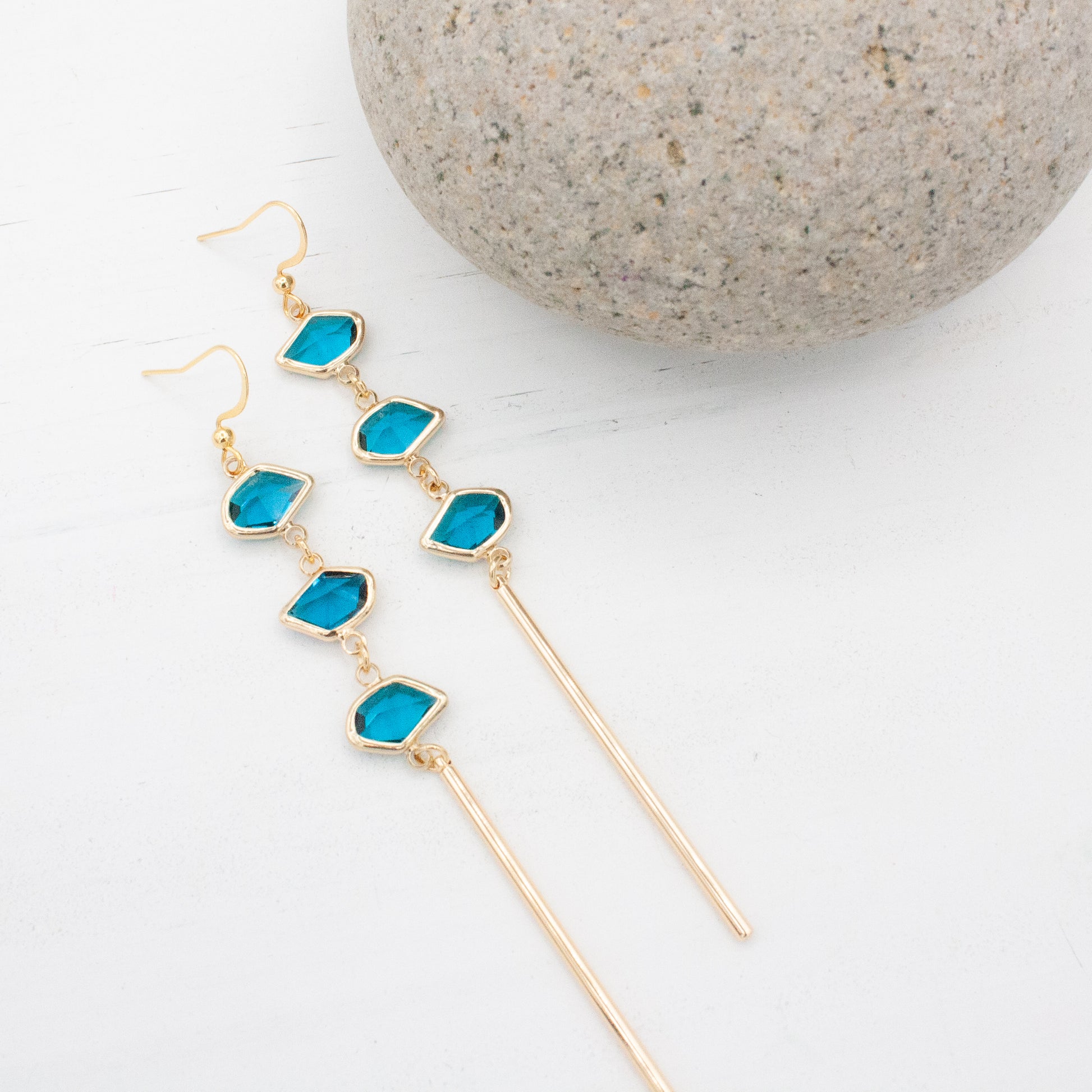 Slide these on and let your day feel like a sun-soaked getaway. The beveled Island Ocean glass glimmers like waves at golden hour, moving with every turn of your head. Bold, luminous, and effortlessly chic - these are the earrings that make everyday feel like paradise.