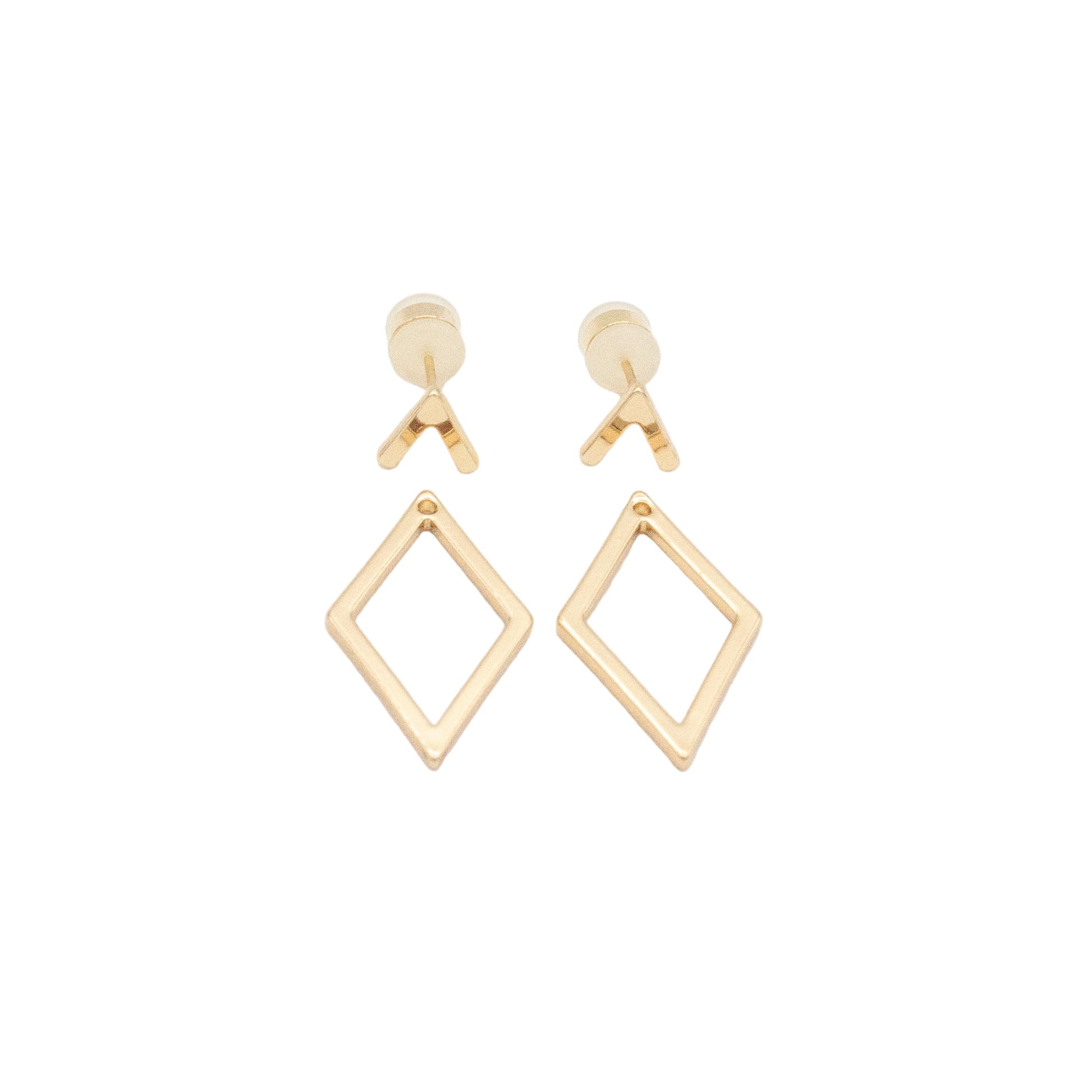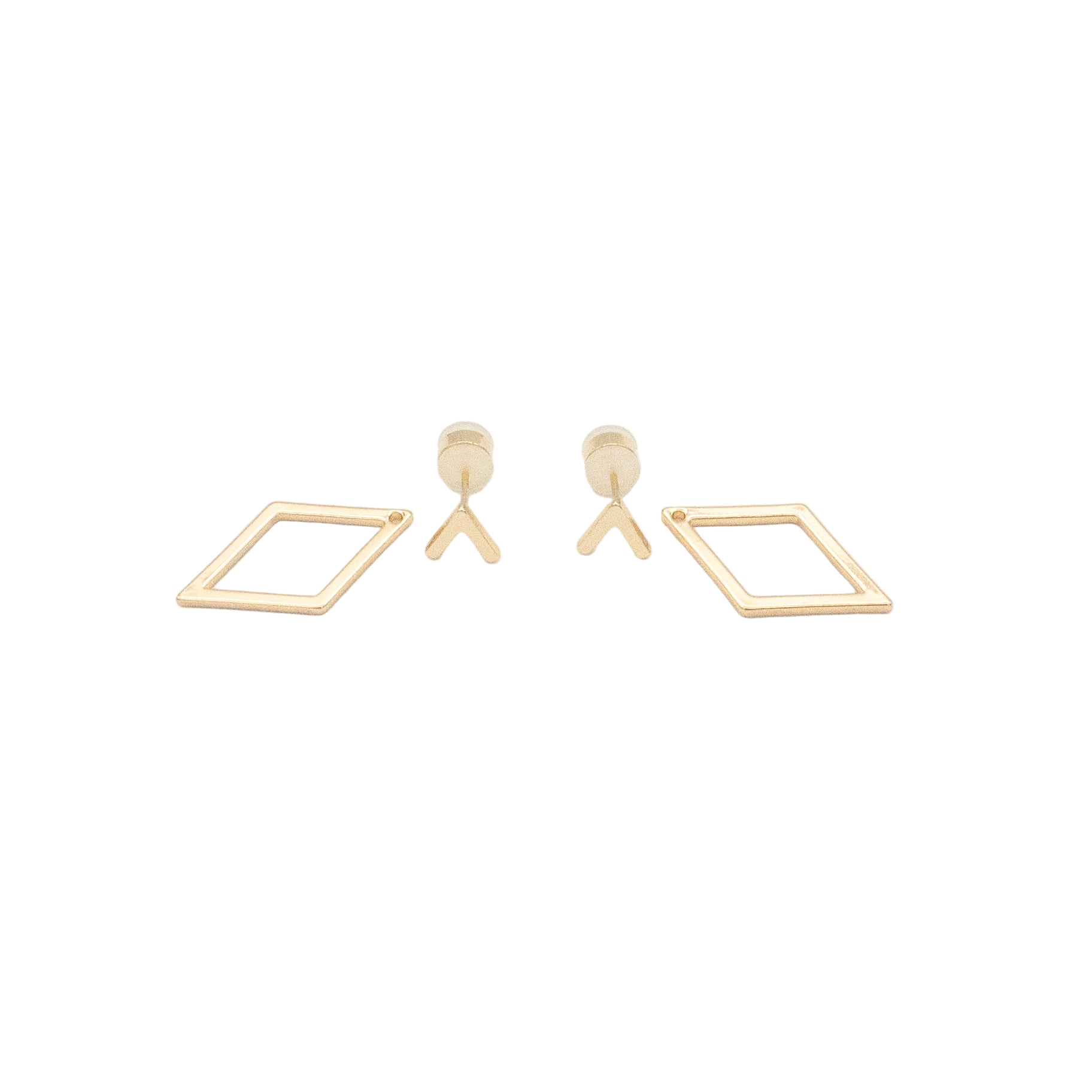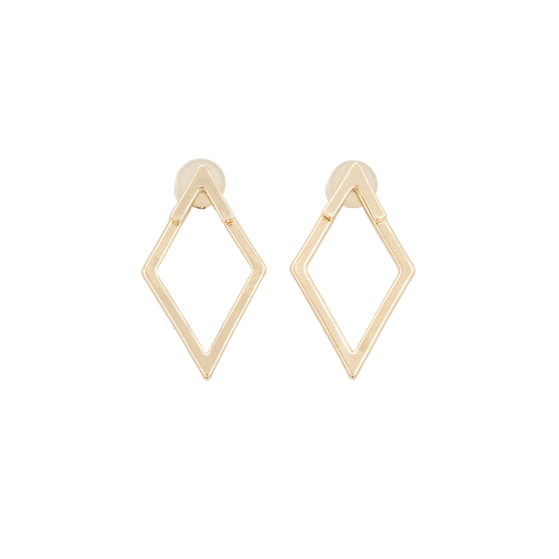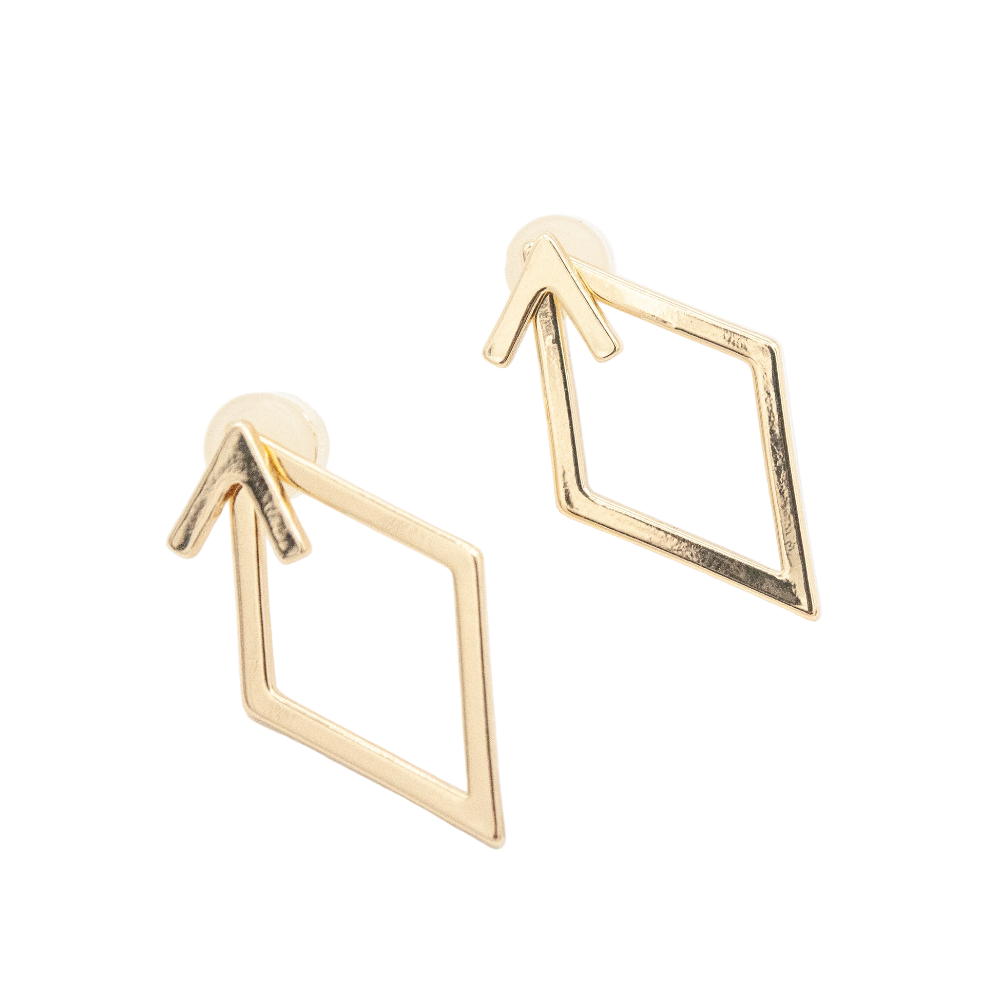 Architectural with a golden twist. These geometric earrings feature an upside-down V stud that can be worn solo or paired with a diamond-shaped jacket for a dimensional, 3D look. Sculptural, versatile, and effortlessly cool—made to shine from desk to dusk.