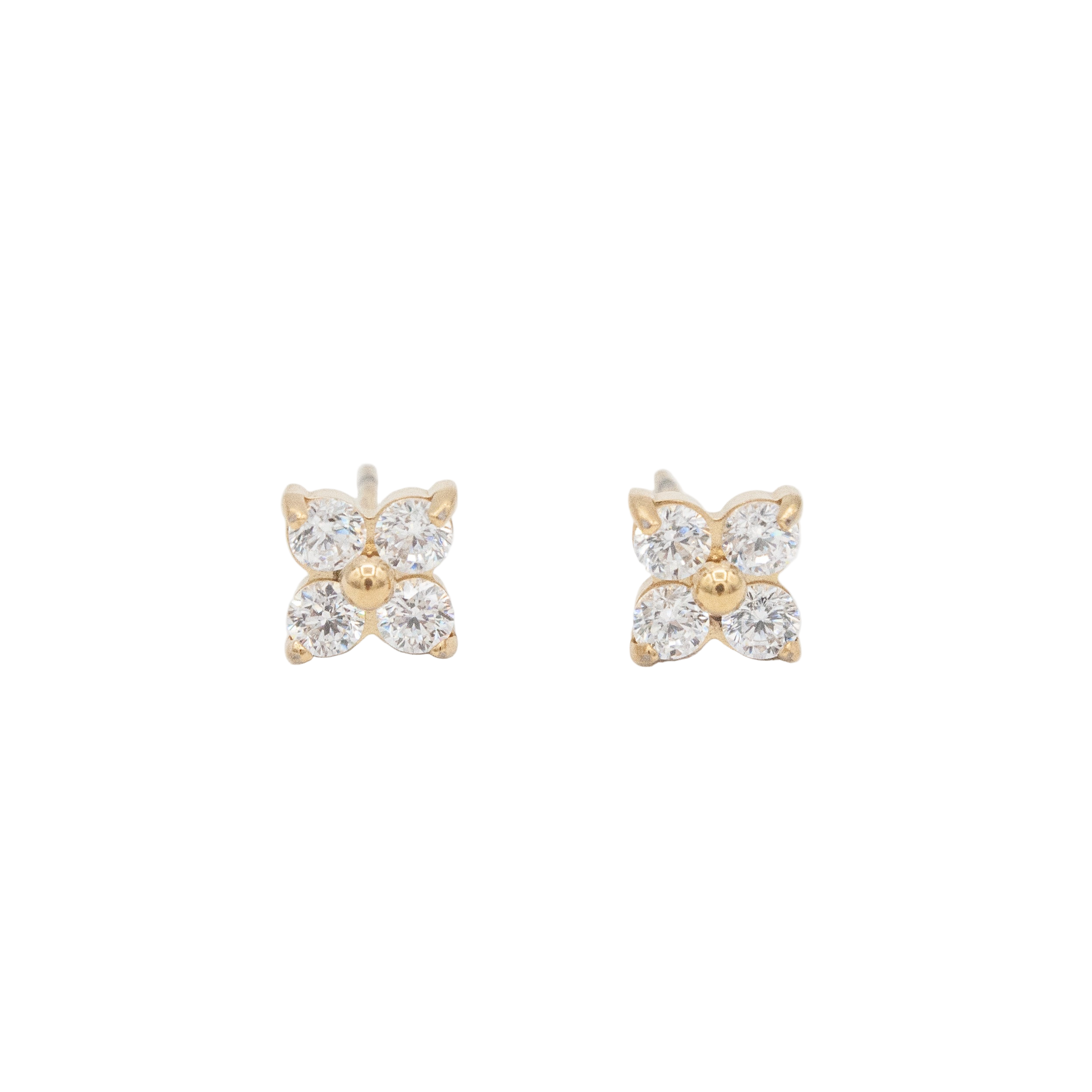 A modern twist on the classic clover. Set with sparkling CZ stones, these pointed studs strike the perfect balance between polish and play. Timeless shine with a hint of attitude.