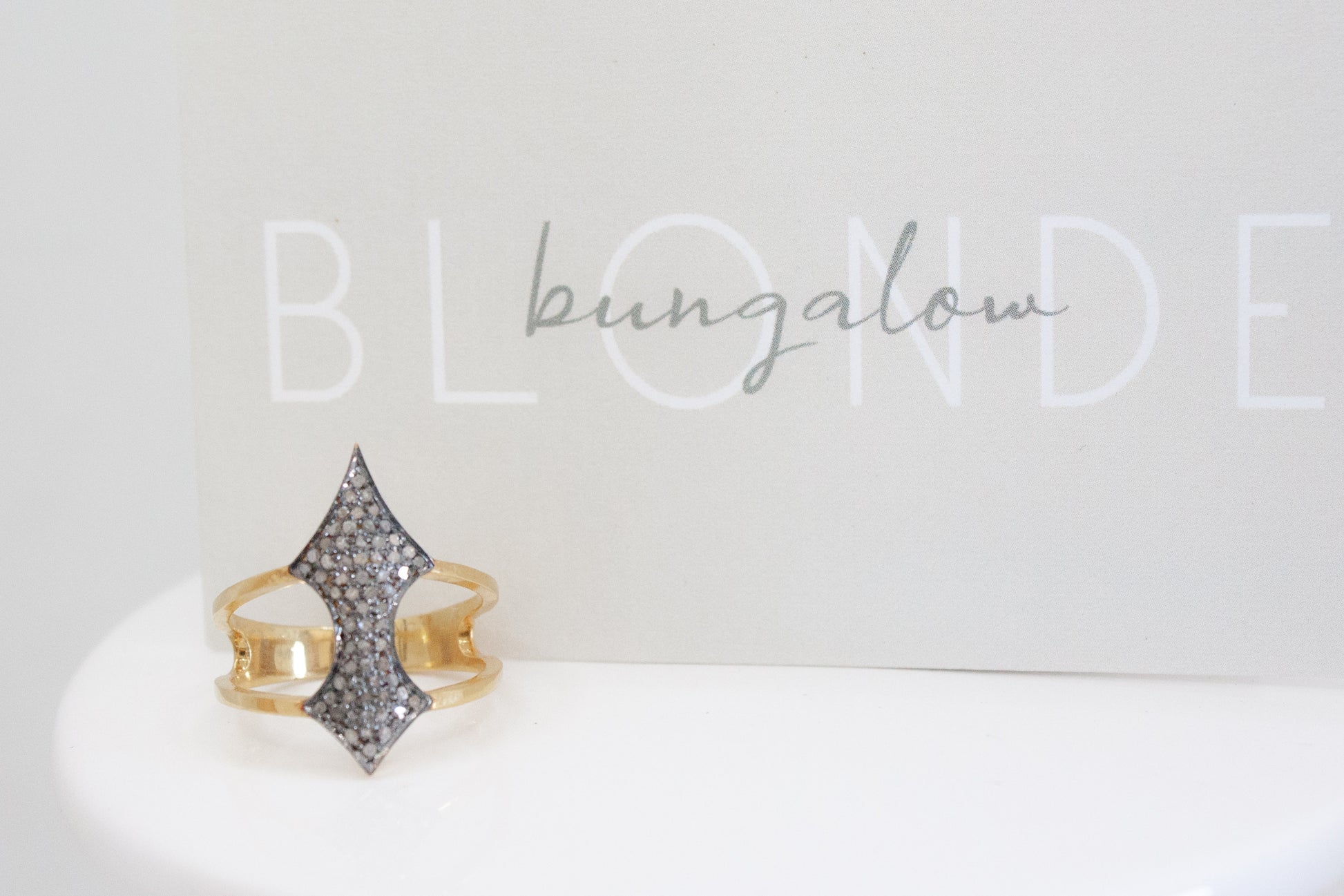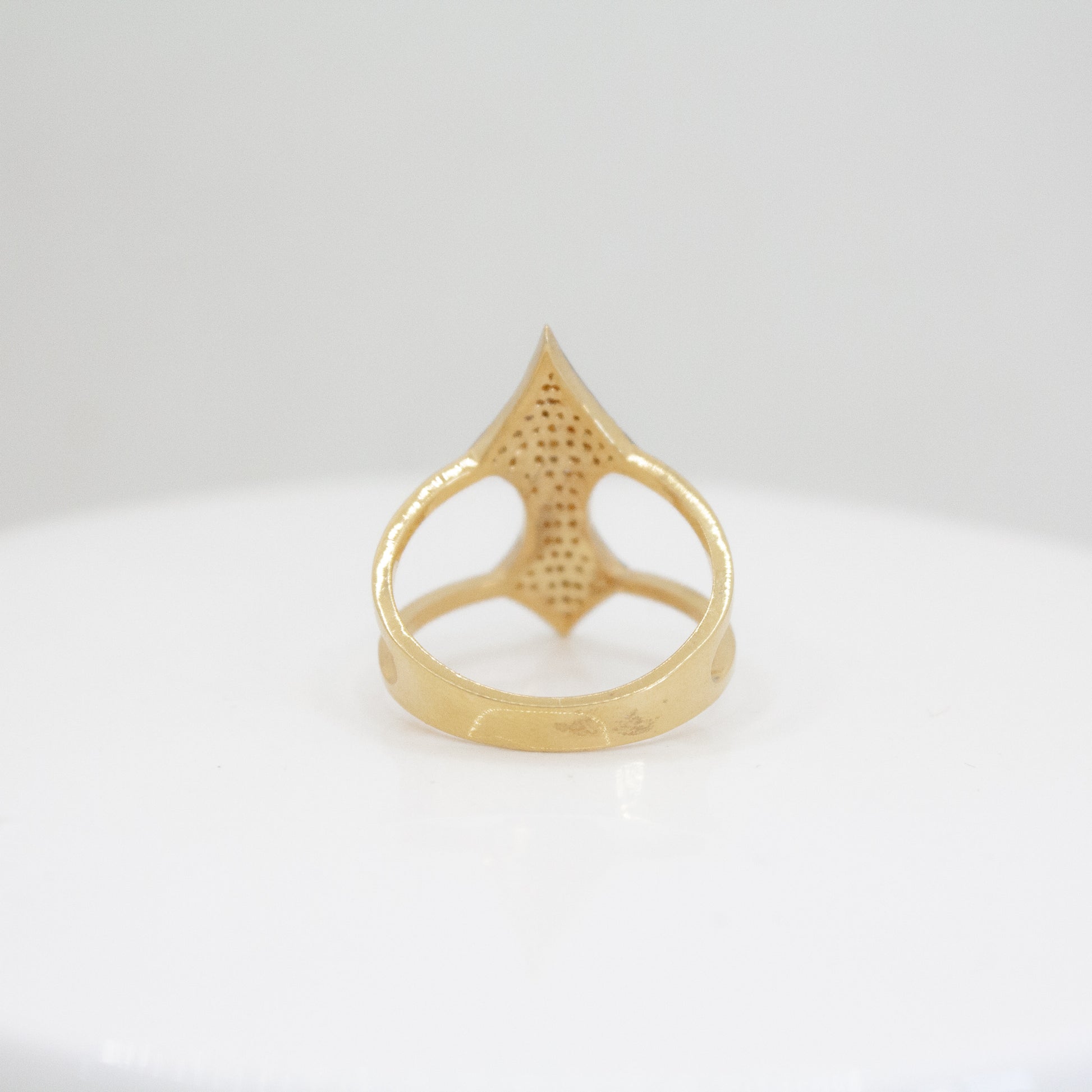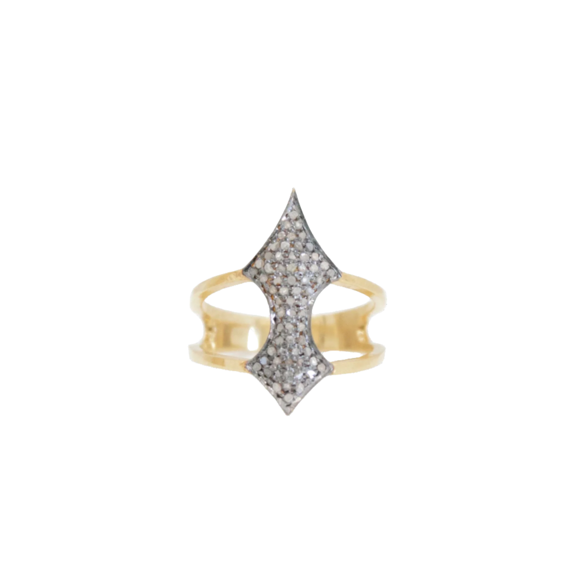 Experience the epitome of luxury and sophistication with our 14k Gold Vermeil .925 Sterling Silver Valyrian Shield Ring. Meticulously handcrafted to perfection, this exquisite piece features a pavé setting of natural, ethically sourced diamonds from India. The pointed shield design, combined with the elegant pavé setting, creates a timeless and refined look, perfect for elevating any ensemble.