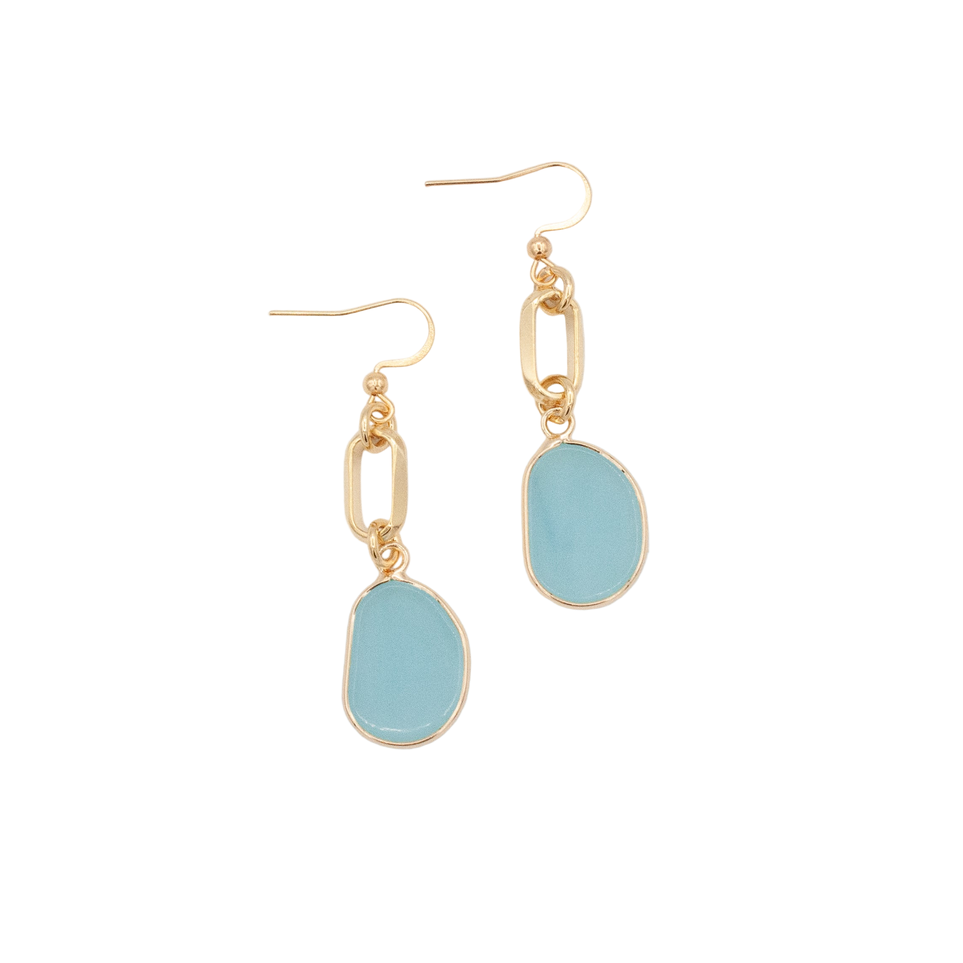Channel easy coastal glamour with the Seaside Earrings. Crafted from recycled sea glass in a soft aqua hue, they bring a breezy touch of ocean-washed elegance - effortless, breezy, and perfect for your next island getaway.