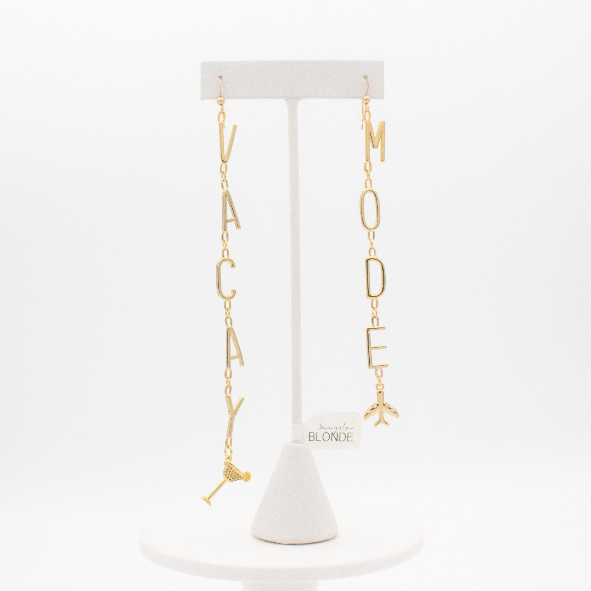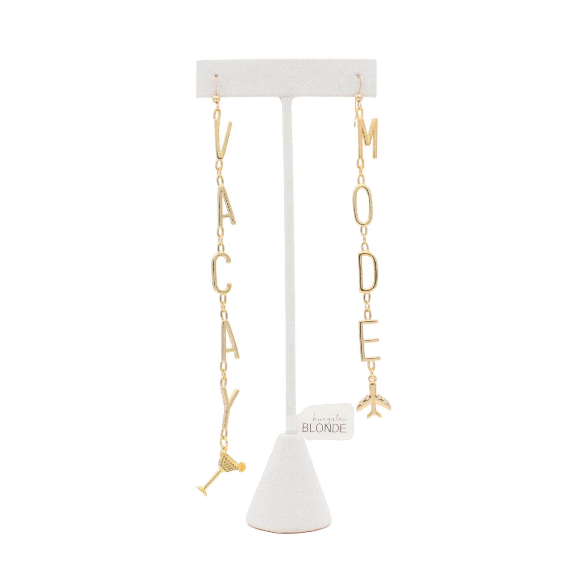 Out-of-office, but make it gold. These Vacay Mode letter earrings are your instant mindset shift - no boarding pass required. Slip them on and let the world know you’ve officially checked into vacation—even if you’re still close to home.